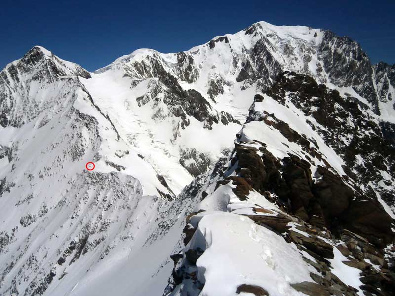 En un lugar como este es inevitable pensar en un accidente, incluso mortal. Seguramente es lo que te mantiene vivo. Pero al anticipar el problema la mente no distingue entre realidad e hipótesis, y se entra en un bucle tóxico que no lleva a ninguna parte, como todos los bucles. De ninguna manera me planteaba dar la vuelta y desandar el camino recorrido, así que durante un rato no dejé de imaginar unas condiciones pésimas para atravesar la afilada arista de Bionnasay al día siguiente. Y aún peor, un descenso agónico desde el Montblanc a partir del mediodía con el sol cayendo a plomo y derritiendo la huella. Pero eran eso, imaginaciones.